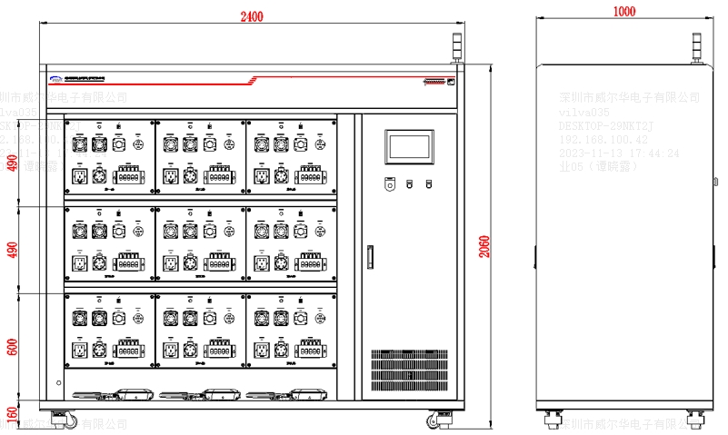 威爾華采用機(jī)柜帶輪子可移動(dòng)式是一款專(zhuān)門(mén)用于交流充電樁老化試驗(yàn)使用,老化系統(tǒng)主要包括車(chē)輛插座、車(chē)輛控制導(dǎo)引模擬電路、回饋負(fù)載、 可選三相升壓交流電源(適配電網(wǎng)電壓偏低時(shí)后面工位壓降大問(wèn)題)、配套系統(tǒng)軟件等;