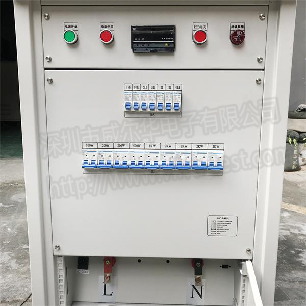 新型功耗組件,功率密度高,無紅熱現(xiàn)象,整機由阻性負載、感性負載、容性負載三部分組成。功率輸入采用分段式開關(guān)控制,負載采用耗能方式工作,散熱采用強制風冷方式。風機采用小型軸流風機,具有風量大,散熱性好,噪音小等特點。