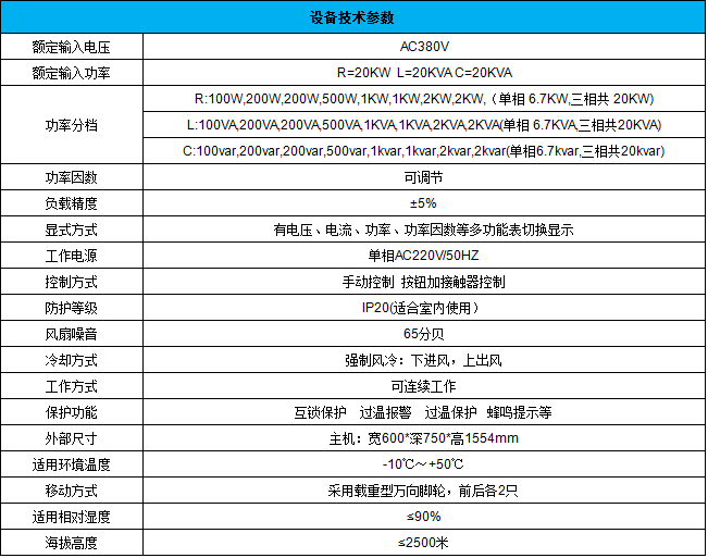 VILVA-AC380V-20KW-RLC三相交流負載箱內置有純阻性負載,感性負載,容性負載;可以模擬各種功率負荷,滿足發(fā)電機組,UPS電源,逆變器等交流電源滿負載檢測需要,是生產車間、實驗室、安裝調試、科研開發(fā)必備的檢測工具。