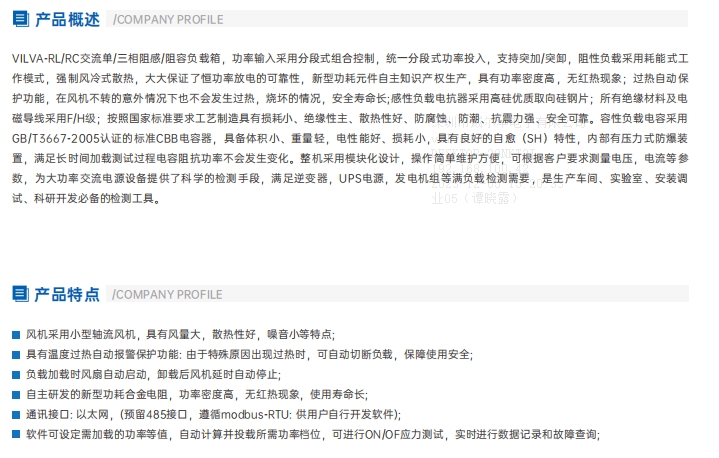 產(chǎn)品規(guī)格:VILVA-RL/RC交流單/三相阻感/阻容負(fù)載箱