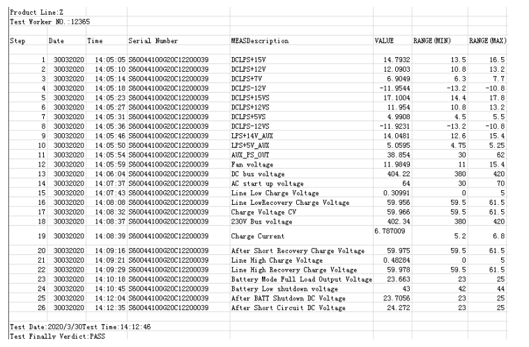 測(cè)試報(bào)告保存格式為Excel或TXt檔,報(bào)告格式如下。(示例)