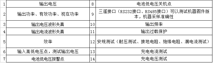 1.電池狀態(tài)下空載及滿載的輸出電壓及頻率測試(測試機(jī)器及電池狀態(tài)的帶載能力)