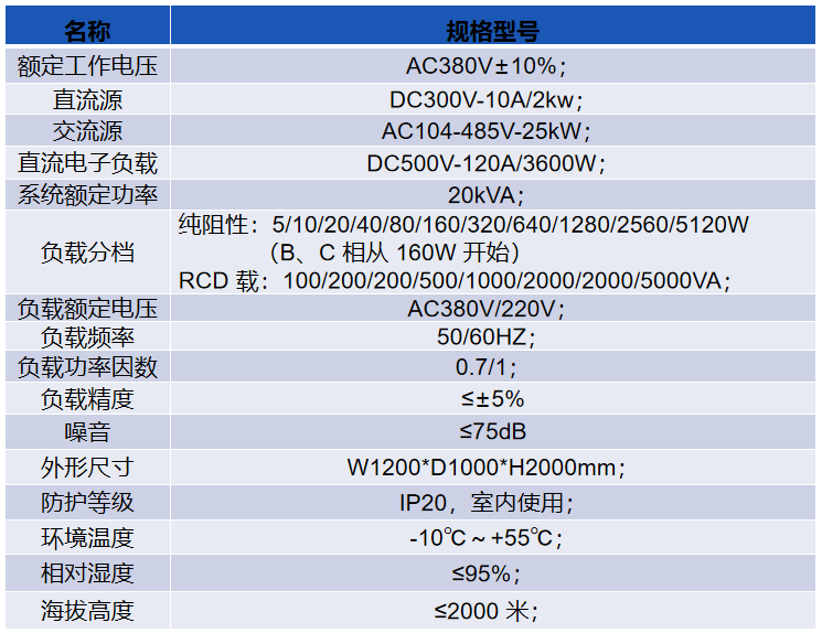整個(gè)系統(tǒng)由儀器、負(fù)載、配電、測(cè)量及控制五大部分構(gòu)成,并集成在一臺(tái)機(jī)柜中。主要 有 AC Source、DC Source、電池(選配)、安規(guī)儀、配電模塊、控制模塊、負(fù)載(電阻負(fù) 載、非線性負(fù)載、直流電子負(fù)載*2)、工控機(jī)、示波器、功率計(jì)*2、萬用表、掃碼槍等。