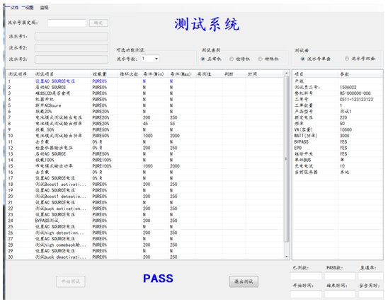 VILVA-20KVA-UPS-ATE測(cè)試系統(tǒng)是 VILVA 根據(jù) UPS 檢驗(yàn)標(biāo)準(zhǔn)設(shè)計(jì)開發(fā)的自動(dòng)化測(cè)試系統(tǒng)。整機(jī)采用 模塊化設(shè)計(jì)方案,系統(tǒng)集成度高,占地面積小,維護(hù)檢修方便。工作時(shí),系統(tǒng)采用掃碼記錄, 測(cè)試功能全面,操作簡(jiǎn)單,并可與客戶的 MES 系統(tǒng)連接,自動(dòng)上傳測(cè)試數(shù)據(jù)。系統(tǒng)單機(jī)測(cè) 試完成時(shí)間只需 90s,相比較傳統(tǒng)手動(dòng)測(cè)試,此系統(tǒng)對(duì)測(cè)試效率、測(cè)試準(zhǔn)確率以及數(shù)據(jù)管理 都有顯著提高,非常適用于 UPS 流水線上的成品出廠測(cè)試。