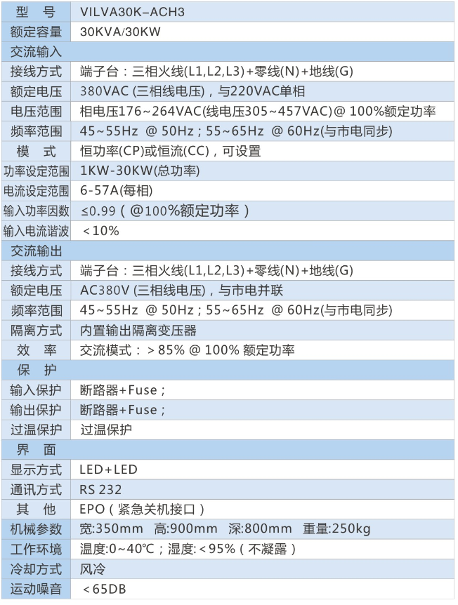 產(chǎn)品規(guī)格:VILVA30K-ACH3交流回饋負(fù)載