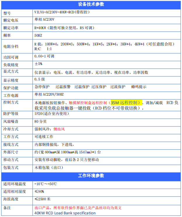 產(chǎn)品規(guī)格:VILVA-AC230V-40KW-RCD (帶程控) 可調(diào)負載箱