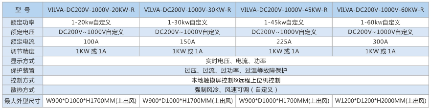 產(chǎn)品規(guī)格:VILVA-DC200V~1000V-20KW-R高壓直流負(fù)載箱