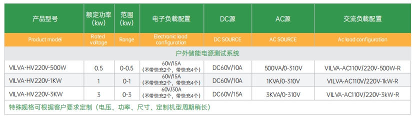 產(chǎn)品規(guī)格:VILVA-HV戶外儲能電源測試系統(tǒng)