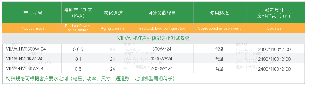 產(chǎn)品規(guī)格:VILVA-HVT戶(hù)外儲(chǔ)能電源恒溫老化柜系統(tǒng)