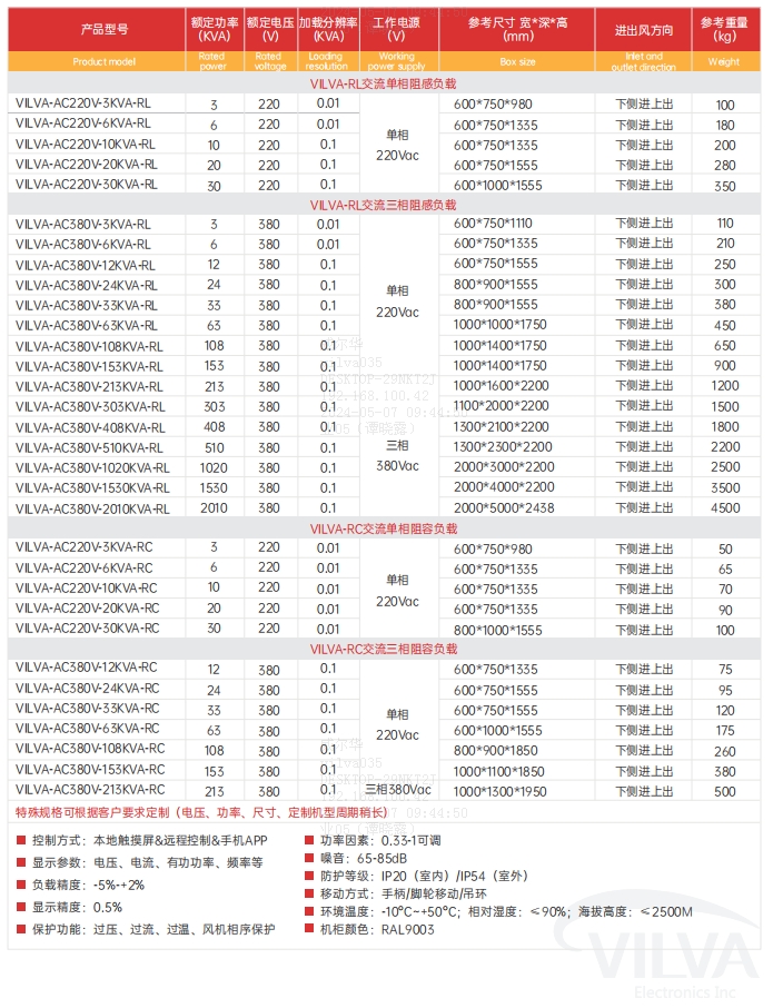 產(chǎn)品規(guī)格:VILVA-RL/RC交流單/三相阻感/阻容負(fù)載箱