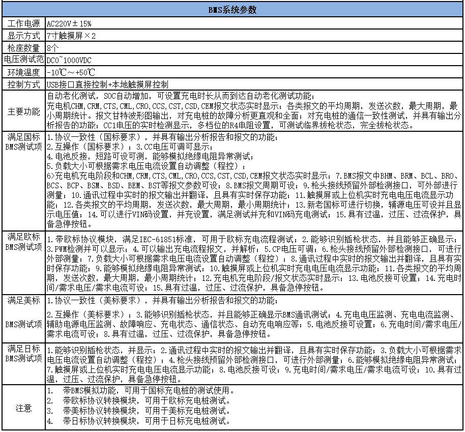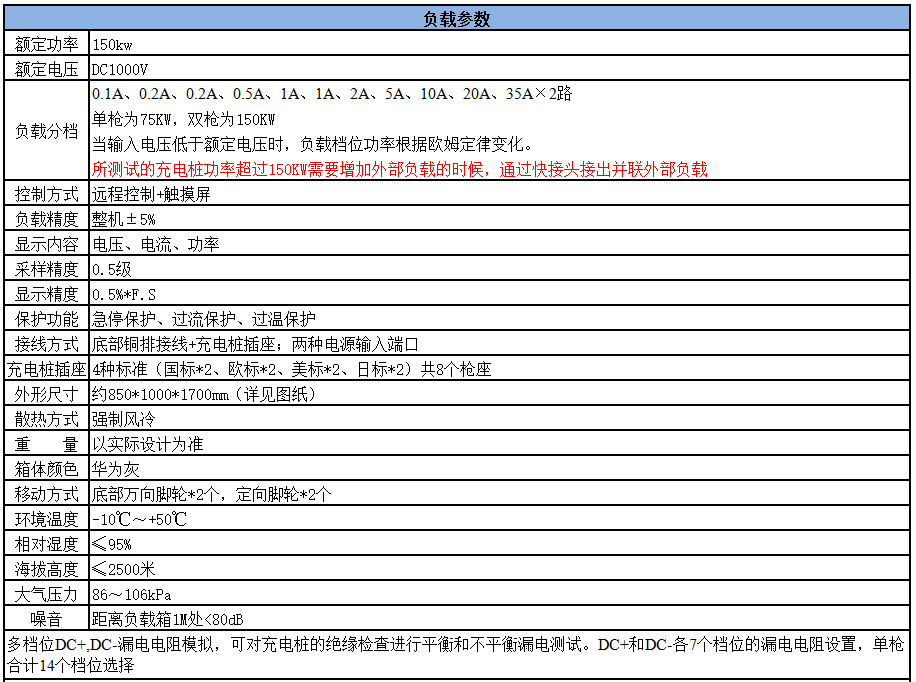 產(chǎn)品規(guī)格:直流充電樁測(cè)試負(fù)載(150kw/配國(guó)/歐/美/日標(biāo)雙槍座)