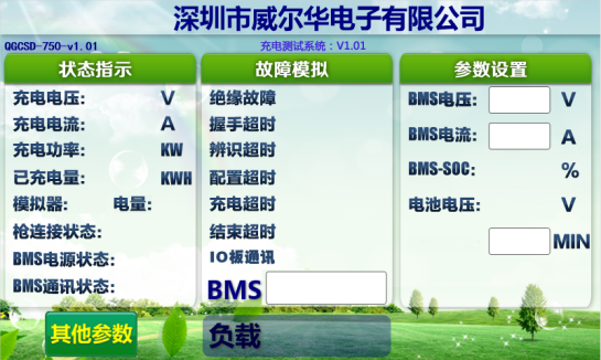 該直流充電樁測試負載由BMS模擬系統(tǒng)及直流負載兩大部分組成,統(tǒng)一采用觸摸屏控制方式進行模擬測試及負載加減載操作(也可選用采用上位機遠程控制)。主要應用于直流充電樁產(chǎn)品的現(xiàn)場安裝調(diào)試及功能驗證,也可以用于在線調(diào)試、下線檢測、功能驗證。該測試負載真實模擬充電過程和各種故障,避免采用電動汽車實車作為檢測裝置帶來的測試使用不方便、測試內(nèi)容不全面、無法模擬真實故障、輔助電源系統(tǒng)無法驗證、車輛動力電池充放電耗時耗力、頻繁充放電導致電池壽命縮短等問題,同時可避免充電樁故障導致測試車輛損壞。